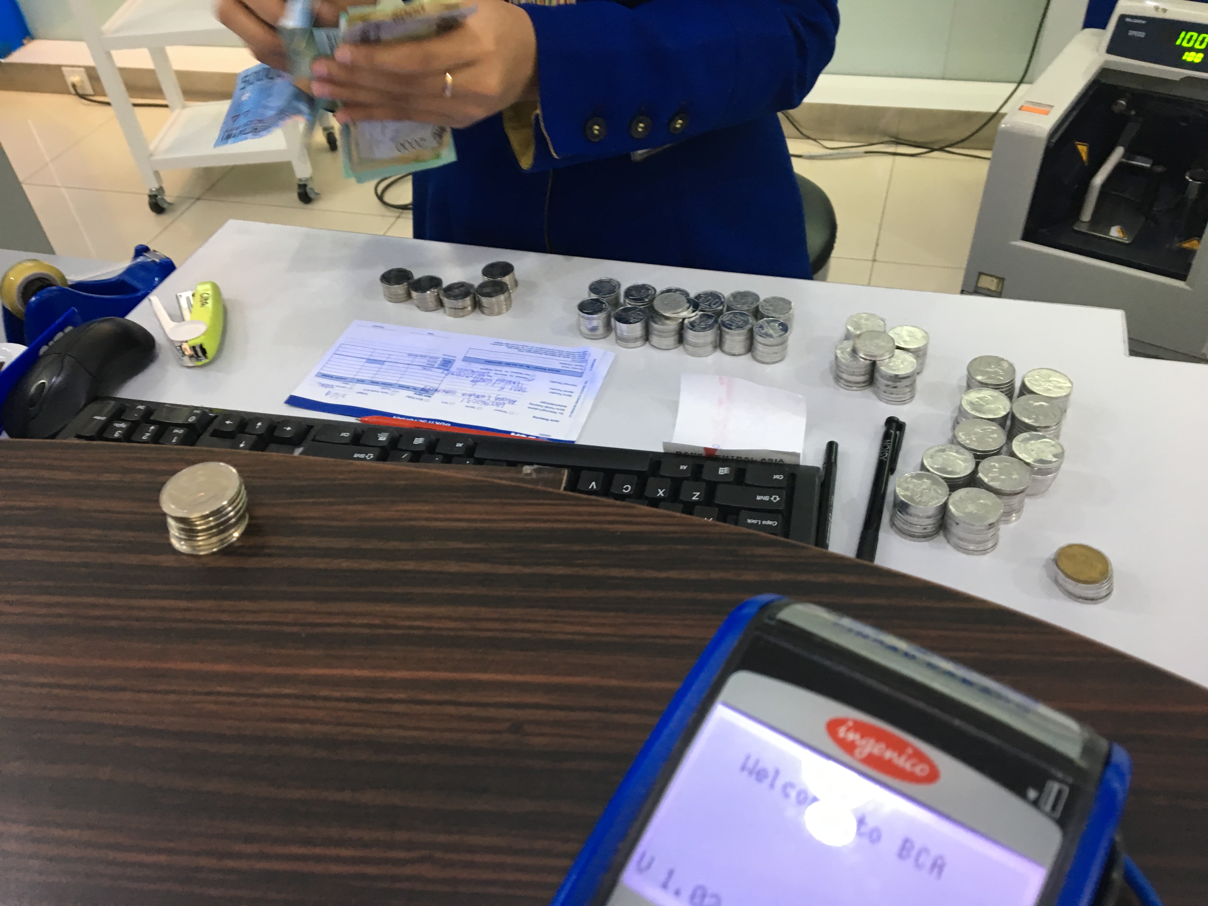 Si kecil diperbolehkan untuk ikut tanda tangan, dan ikut serta menghitung tabungan yang dia bawa. Walaupun sebenarnya kamipun sudah mempersiapkan dari rumah ya :))