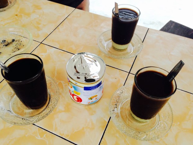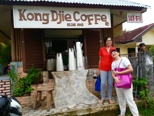 Setelahnya, sore-sore seperti ini enaknya ngopi. Kami pun mampir di kopi khas Belitung, KONG DJIE COFFEE. Saya peminum kopi. Tapi bukan asli kopi. Saya coba kopi campur susu.