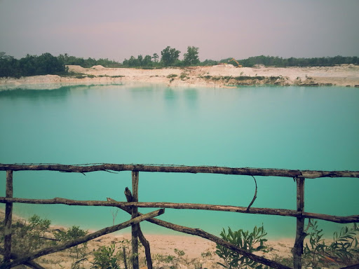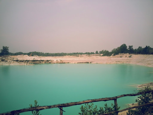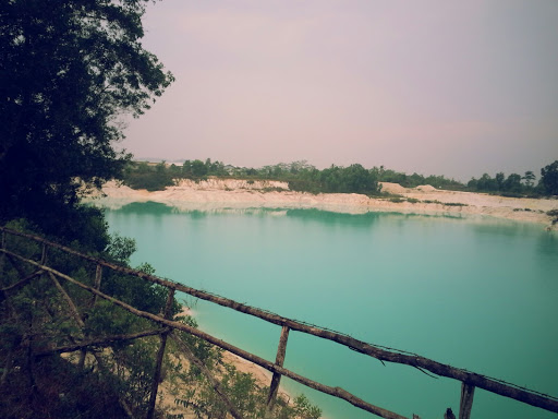Danau ini adalah danau buatan yang terbentuk karena galian kaolin. Terlihat air yang sangat biru dengan tanah liat kaolin disekitarnya.