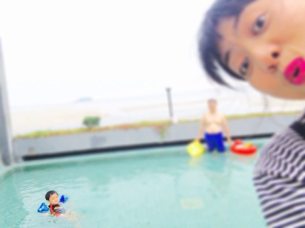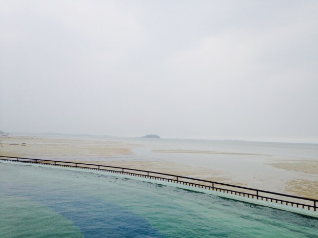 Pemandangan dari kolam renang langsung lautan lepas, bayangkan apabila tidak sedang musim kering pasti akan sangat bagus.