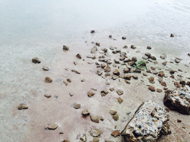 Saat ini tampak air sedang surut sehingga tidak terlihat laut tapi lebih banyak pasir dan bebatuan.