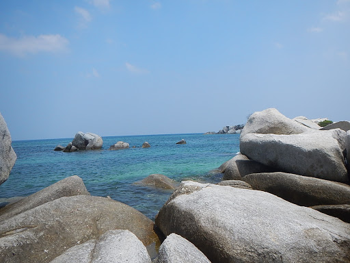 Sekitar pulau pun banyak batuan besar sehingga para pengunjung lebih banyak berfoto.