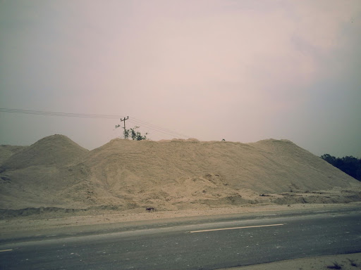 Didepan danau, tampak hasil pasir kaolin yang sedang dipisahkan dengan hasil akhir.