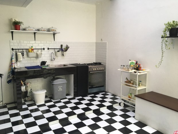 Pemilihan jenis keramik lantai yang terlihat bersih setiap saat dan nyaman bersih ditapak adalah tujuan utama saya. Akhirnya dengan pertimbangan harga dan fungsi yang saya inginkan, kami memilih lantai hitam putih ini.