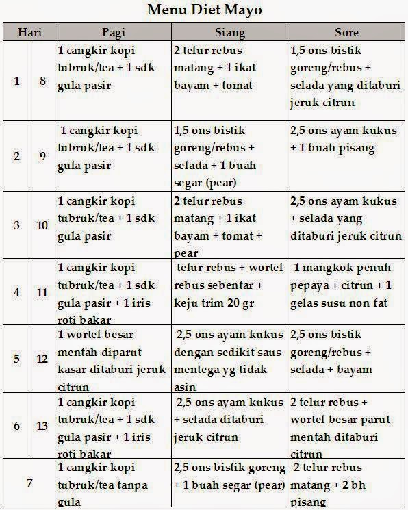 Seperti yang saya katakan sebelumnya, saya pernah melakukan diet mayo dan berhasil menunrunkan 4 kg akibatnya. Sekarang saya akan melakukan sedikit moderasi pada diet mayo tersebut.