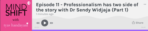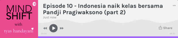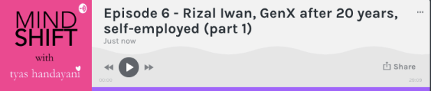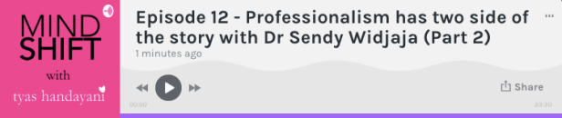A special thanks to Andira yang telah berbagi ilmu dan pengalaman bersama Mindshift Podcast. Merasa kenal Andira dari kecil hingga sekarang, saya bisa katakan dengan lantang, I am so proud of you. Keep up building what makes you happy. We are happy for you. We are happy with you. Success !