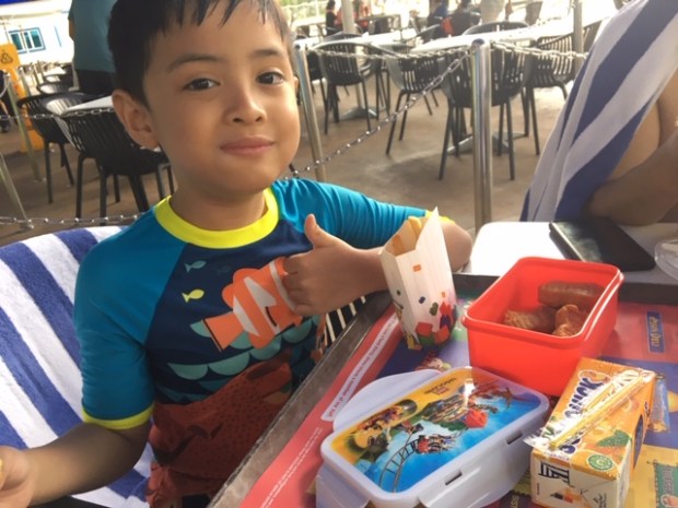 Silahkan bawa makanan, snack atau minuman untuk keperluan si kecil. Bagi kami yang punya beberapa catatan tentang makanan kami berusaha selalu membawa buat yang sudah kami potong dalam plastic zipper bag. Papanya evan diabetes sehingga perlu menjaga asupan makanan untuknya.